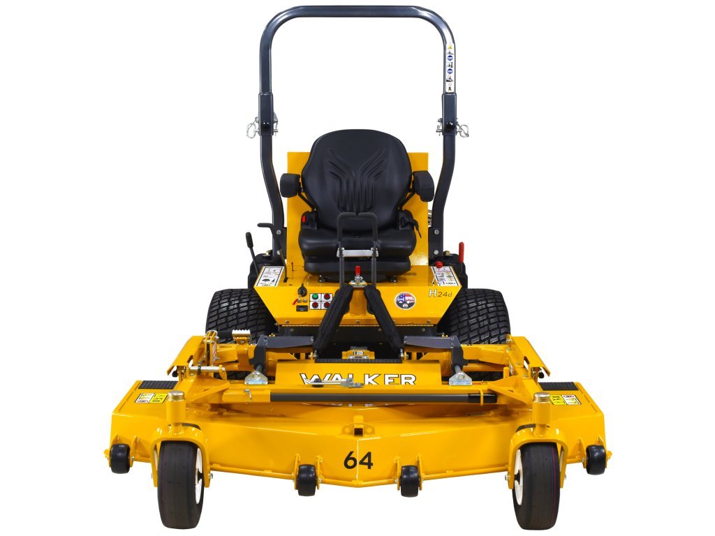 Walker H24d je no‑collection (bez sběru), poháněný výkonným dieselovým motorem Kohler KDW1003 o zdvihovém objemu 1 028 cc, který dává výkon 24HP a maximální točivý moment 50Nm. Díky kapalinovému chlazení, samočisticímu radiátoru a tichému chodu nabízí stabilní výkon i v náročných podmínkách. Sérijní výbava zahrnuje komfortní Grammer suspension seat a palivovou nádrž o objemu 35,6 l, což umožňuje delší pracovní provoz bez nutnosti doplňování paliva.