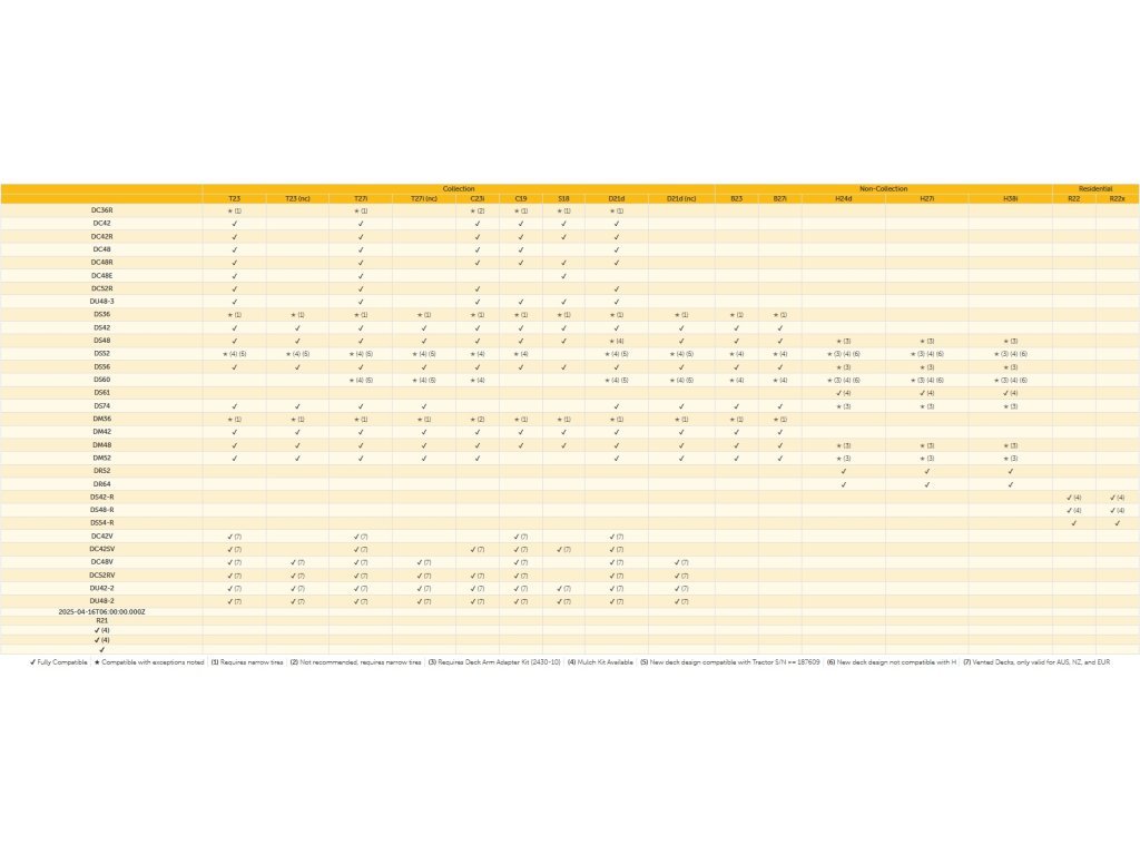 - Žací hlavy: Pro mulčování 122 cm - 155 cm, s výhozem 122 cm - 188 cm